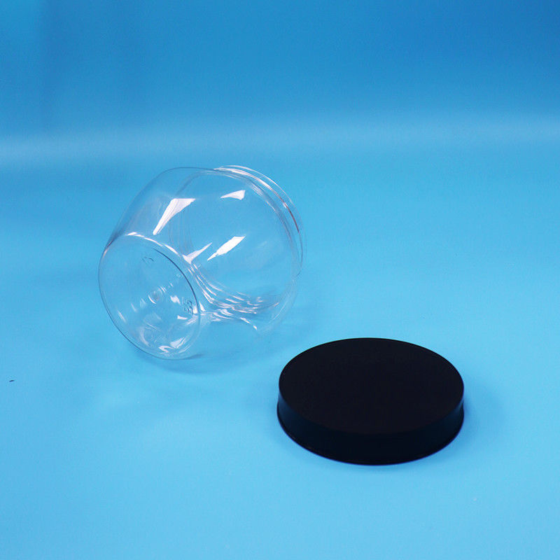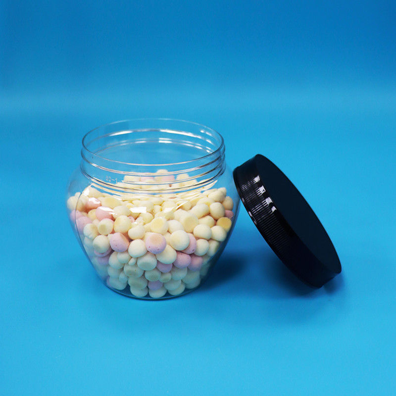 Zamknięty przezroczysty unikalny kształt plastikowy PET Cukier Żywność Cookie Jar Czarny plastikowy pokrywkę