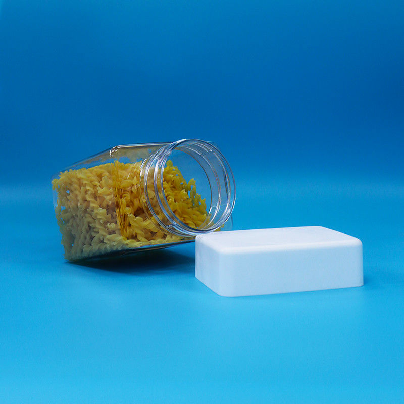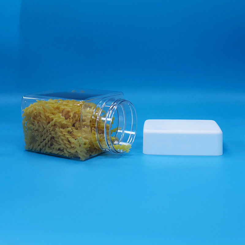 PET cukierki przekąski plastikowe żywności przejrzystość kwadratowe słoiki śrub top białe pokrywy
