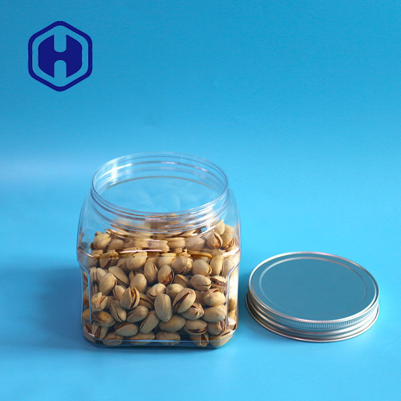 To jestuchwyt plastikowy kwadratowy słoik PET z aluminiową pokrywką;które po napełnieniu herbatników z nerkowców w puszkach, aluminiowa pokrywa EOE (łatwe otwieranie końcówek) / POE (odklejanie końcówek) lub pokrywa z blachy blaszanej wymagają maszyny uszczelniającej do uszczelnienia pokrywy, dostarczamy maszynę do uszczelniania zapałek dla klientów również, jeśli potrzebować.Oferujemy touchwyt plastikowy kwadratowy słoik PET z aluminiową pokrywką;które mogą utrzymać około 1000 ml produktów o pojemności wodnej w puszkach, a to?uchwyt plastikowy kwadratowy słoik PET z aluminiową pokrywką jestszczelny i w 100% szczelny.
