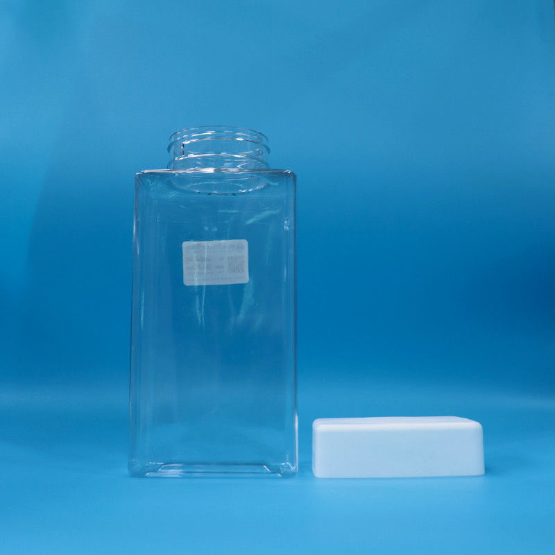 1. PET kwadratowe plastikowe słoiki do żywności z białą plastikową pokrywką