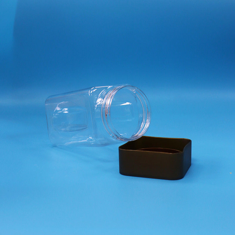 1Przejrzysty PET kwadratowy plastikowy słoik Wholesale - z opcjami podwójnej uszczelnienia