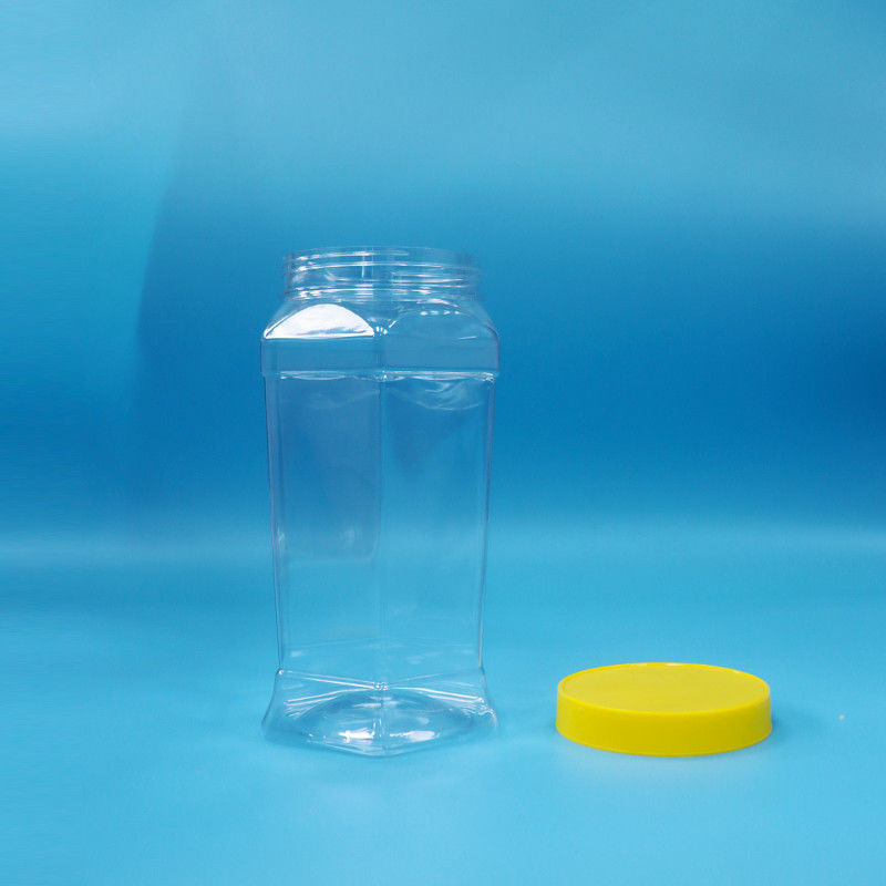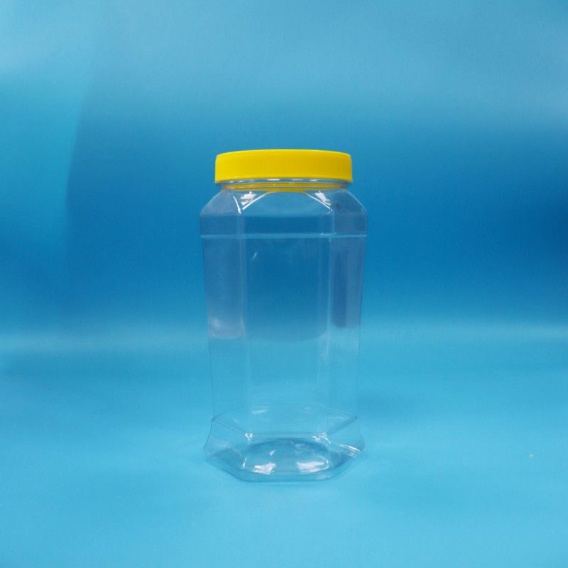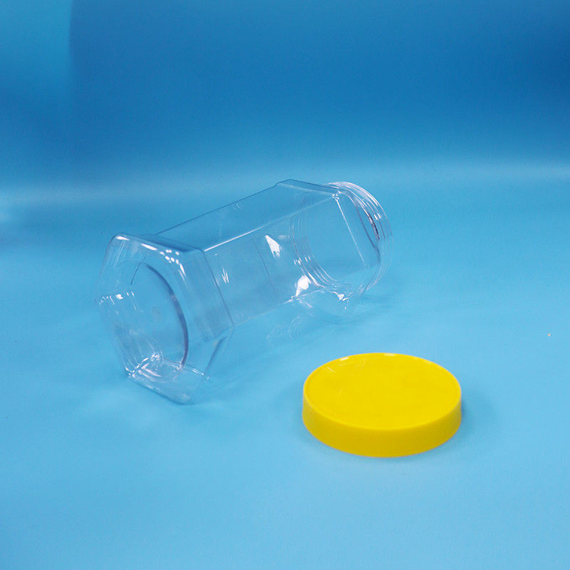 Ciasteczka żywnościowe Cukierki sześciokątne w kształcie przezroczyste słoiki PET Żywność Żółta czapka śrubowa