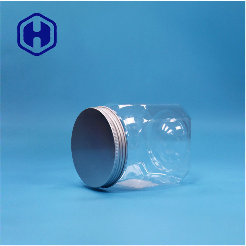 Poligonalne kształt przezroczyste ciasteczka z tworzyw sztucznych Rock cukier orzechy cukier Jar Aluminium górna pokrywa