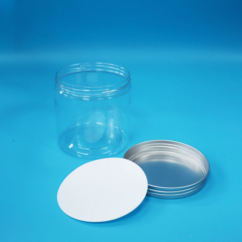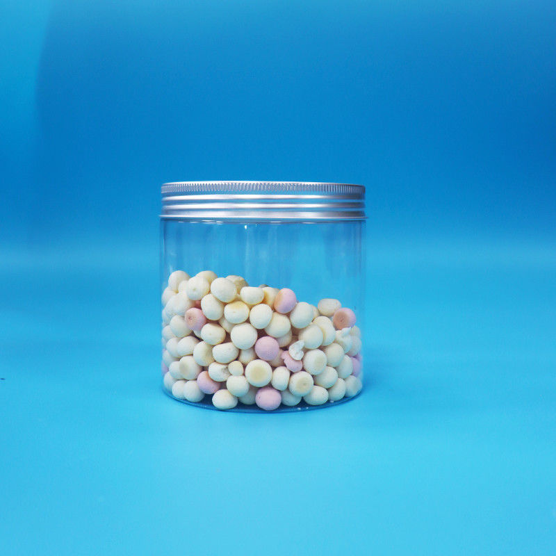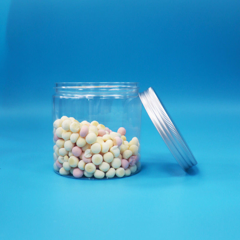 Okrągły szeroki usta Cylinder kształt Jasny PET Plastikowe ciasteczka Jar Aluminiowy muszel Cap
