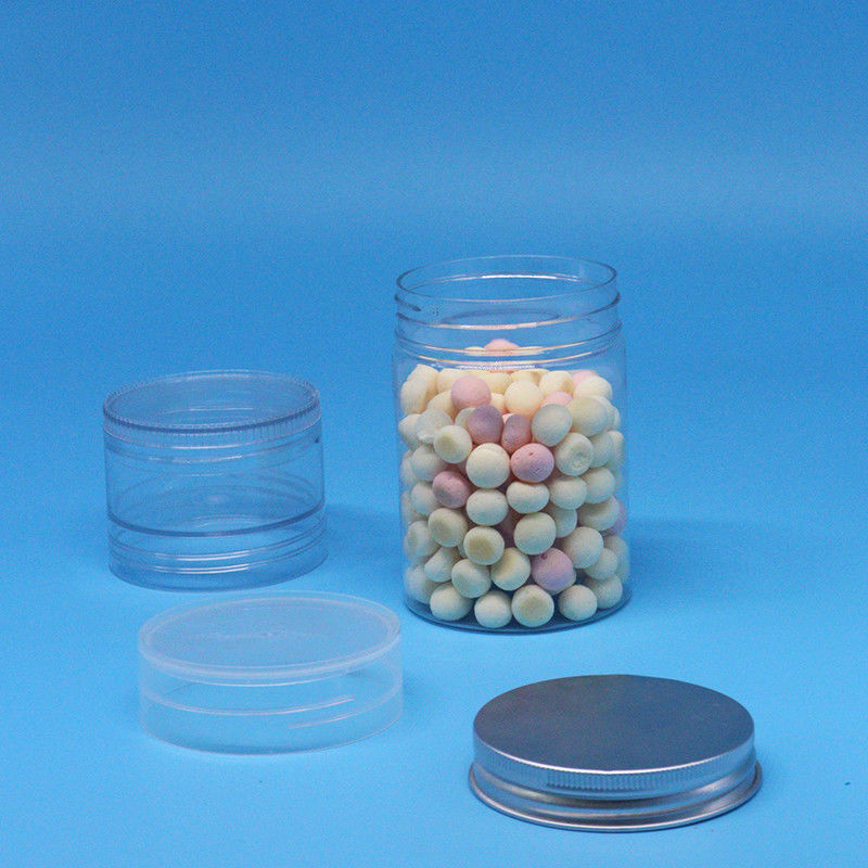 Pusty PET Żywność Cylinder Round Food Candy przezroczyste słoik Skrut płaskie pokrywy