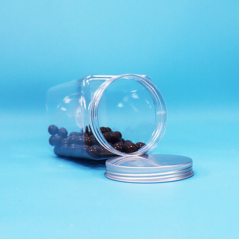 Zakręcana aluminiowa pokrywka, kwadratowy kształt, przezroczysty plastik PET, słoik na makaron, cukierki, bez BPA