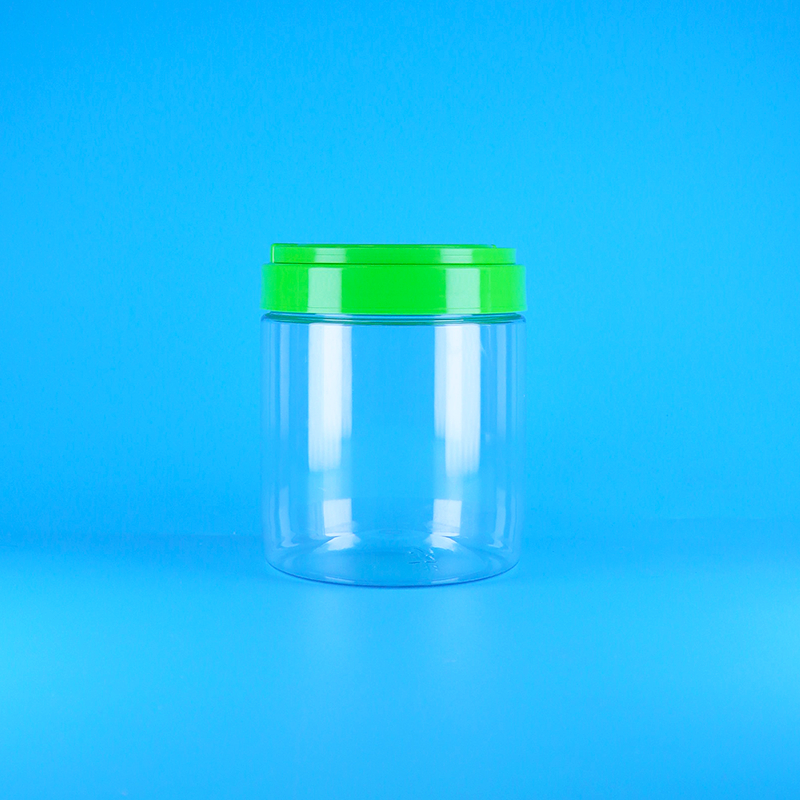Szczelny, pusty, plastikowy słoik PET do żywności, przezroczysty, okrągły, z zakrętką do masła orzechowego i uchwytem